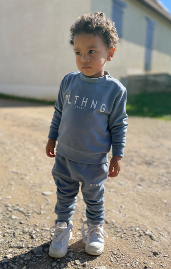 ENSEMBLE SWEAT COL ROND ENFANT | "CLTHNG" - Bleu/Blanc